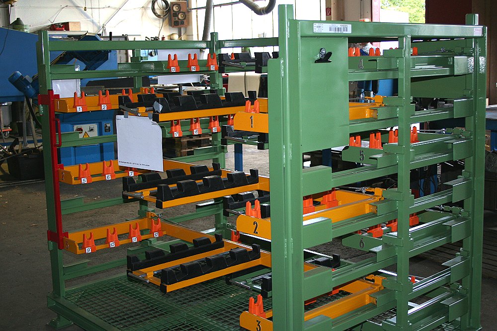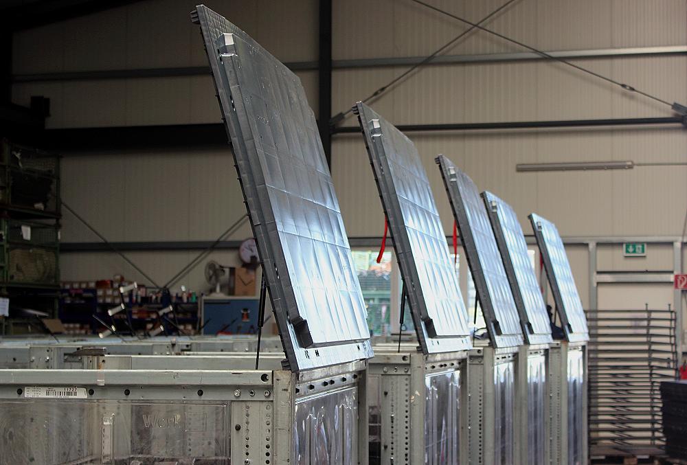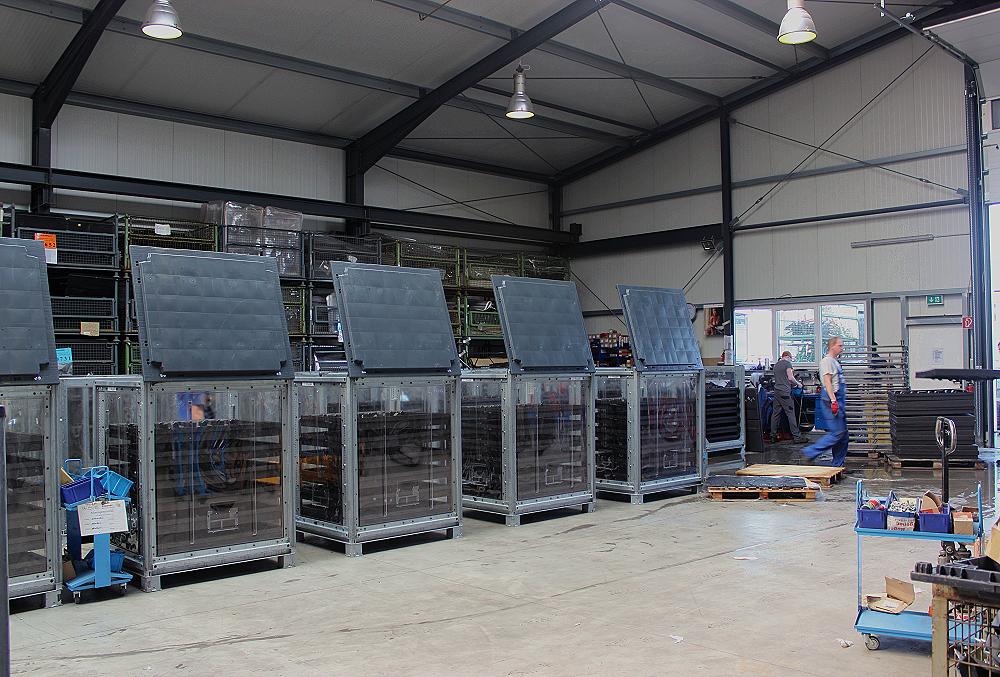 Mobile Transport-Rollbehälter für Montagestraßen der Automobilindustrie.